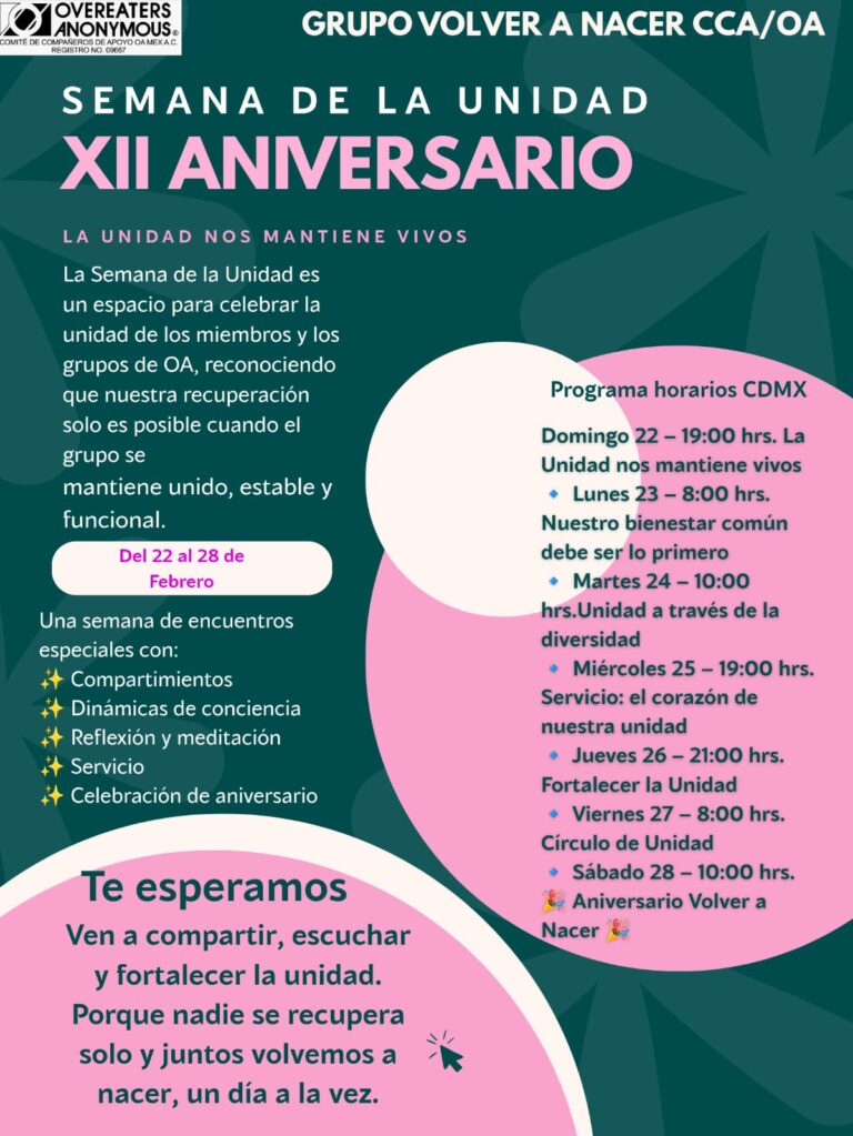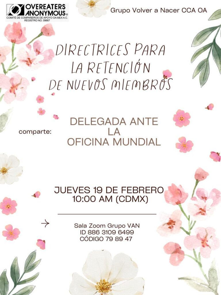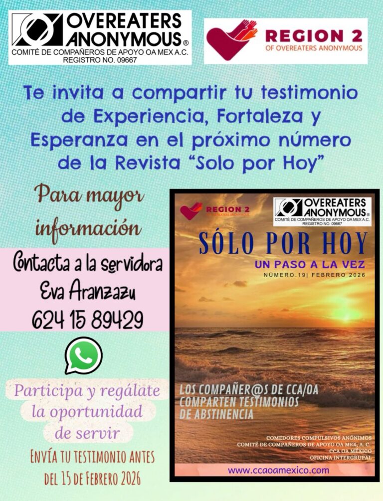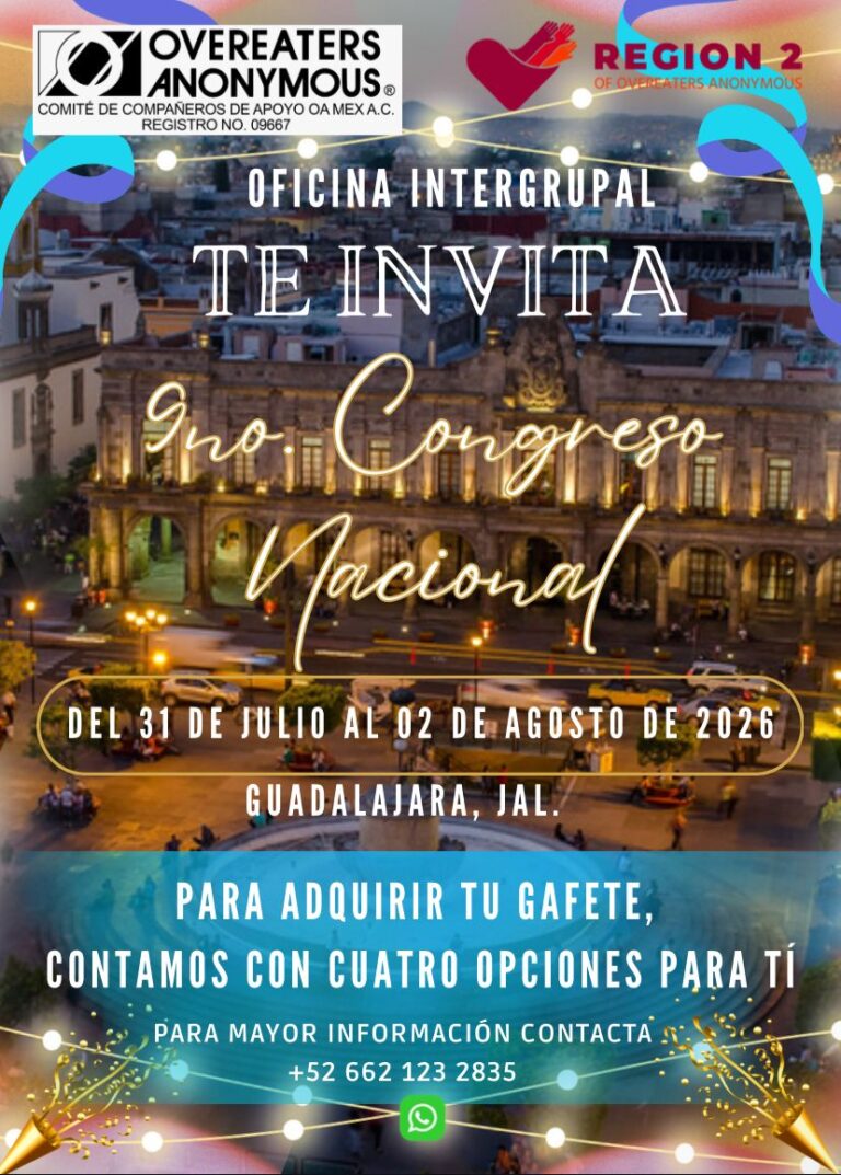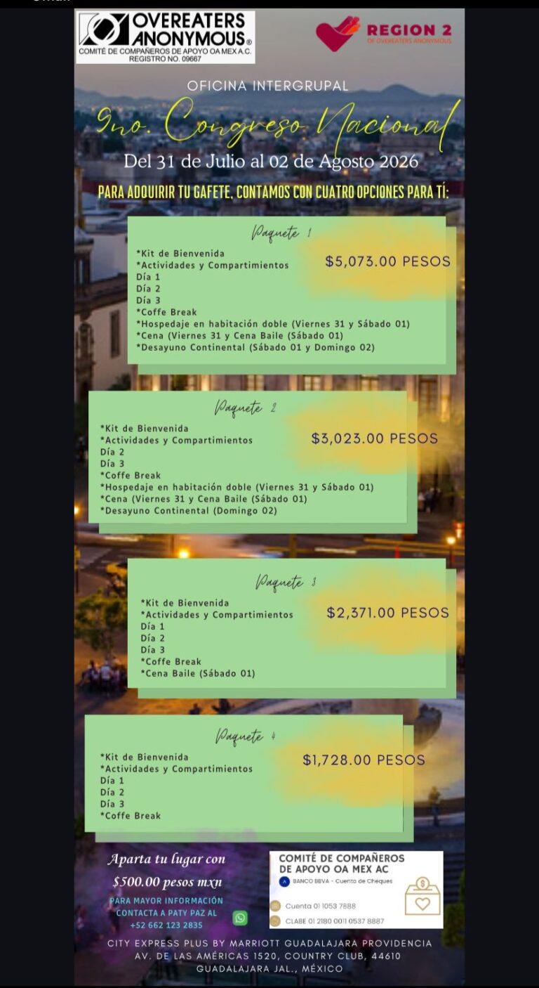 Para conocer detalles sobre los eventos EN IDIOMA INGLÉS, organizados por la Región 2 y por la Oficina Mundial de Comedores Compulsivos Anónimos / OA, has «click» en cada ícono, según corresponda: